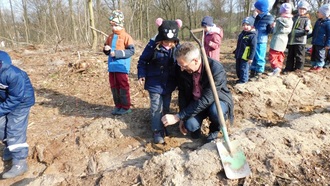 Zum Schluss der Aktion bedankte sich der Bürgermeister bei Herrn Robin Huster für die Spende der Tulpenbäume und bei den Kindern für ihre Arbeit. Er verband dies mit der Hoffnung, dass die Heidezwerge bei Ihren Spaziergängen ihre Tulpenbäume beim Wachsen zusehen und vielleicht später ihren Kindern von ihrer Pflanzaktion berichten können.