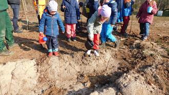 Zum Pflanzen lud der Bürgermeister Matthias Löwe tatkräftige Helfer aus der Kita Schmannewitz ein. Der Revierförster Herr Christian Huster erklärte den Kids etwas über diese Forstarbeiten und wie die Setzlinge mit den Wurzeln fachgerecht gepflanzt werden. Mit Begeisterung nahmen die Kids die kleinen Tulpenbäumchen in die Hand, setzten die Setzlinge in die vorbereiteten Pflanzlöcher, richteten die Wurzeln und traten die Erde leicht an. Der städtische Bauhof brachte Wasser, sodass die Pflanzhelfer ihre Bäumchen angießen konnten.