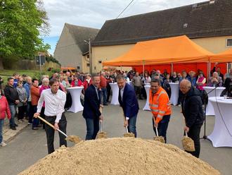 Der langersehnte grundhafte Straßenausbau in Schmannewitz beginnt am 29.04.2024. Im Vorfeld fand am 11.04.2024 eine Informationsveranstaltung verbunden mit dem symbolischen Spatenstich durch die beteiligten Bauherren Herrn Heier vom LASuV - Leiter der Niederlassung Leipzig, Herrn Löwe - Bürgermeister, Herrn Emanuel – Landrat und den Vertretern der beteiligten Unternehmen statt. Herr Trinks vom LASuV erläuterte den geplanten Ablauf, die jährlichen Bauabschnitte mit den auszuführenden Arbeiten sowie die Umleitungsstrecke und nannte zudem Kontaktmöglichkeiten für betroffene Anlieger und vieles mehr. Im Anschluss hatte jeder die Gelegenheit seine Fragen vor Ort, direkt an die anwesenden Verantwortlichen zu stellen, was auch rege genutzt wurde. Das schöne Wetter verbunden mit einem kleinen Imbiss zum Spatenstich sorgten für eine gute Atmosphäre bei den Anwesenden. Natürlich wurde auch auf die Schattenseiten einer so großen Baumaßnahme, verbunden mit Verkehrseinschränkungen und Baulärm, hingewiesen und gleichzeitig um Verständnis gebeten. Für Schmannewitz wird sich nach Abschluss der Bauarbeiten das Ortsbild mit seinen beidseitigen Gehwegen und der neuen Straßenbeleuchtung positiv darstellen, denn die Stadt gestaltet mit der Baumaßnahme den Platz vor der Kirche/Pfarramt und den Platz Ortsausgang in Richtung Bortewitz ebenfalls neu. Für den Erholungsort bedeutet dies eine Aufwertung und für die Anlieger an der Torgauer Straße weniger Lärm durch den derzeit schlechten Straßenzustand. Die gesamte Maßnahme für die 1.100 Meter kostet rund 9 Millionen Euro, von denen die Stadt Dahlen aktuell rund 1,6 Millionen Euro als Anteil zu tragen hat, der für die förderfähigen Kosten, mit einer 80% igen Förderung vom Freistaat Sachsen unterstützt wird.