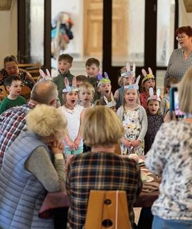 Es ist bereits eine schöne und liebenswerte Tradition in der Kita „Börlner Spatzen“, dass die Kinder und PädagogInnen der Tausendfüßlergruppe, Käfergruppe und Mäusegruppe alle Omas und Opas zu einem gemütlichen Beisammensein einladen. Im April war es wieder so weit. Alle Kinder waren schon sehr aufgeregt und fieberten dem Treffen entgegen. So erfreuten sie ihre Großeltern mit einstudierten Liedern, Gedichten und verbrachten im Anschluss gemeinsam einen schönen Nachmittag bei Kaffee und Kuchen sowie fröhlichen Gesprächen beim Osterkörbchen basteln. Es war eine wertvolle Zeit der Begegnung.