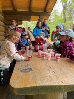 Die Kinder konnten sich an einer Schatzkiste, die Herr Prochazka bereithielt, erfreuen und in gemütlicher Runde beisammensitzen und sich austauschen. Für kühle Getränke wurde auch gesorgt. Gegen Ende der Wanderung konnten sich die Kinder bei bestem Wetter und viel Sonnenschein am angrenzenden Spielplatz austoben. Zum Abschluss des Tages bedankten wir Pädagoginnen uns bei allen Beteiligten für den gelungenen Tag und beendeten somit den Familientag, der von allen Familien gut angenommen wurde und gewiss in diesem Umfang wiederholt wird.