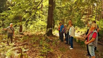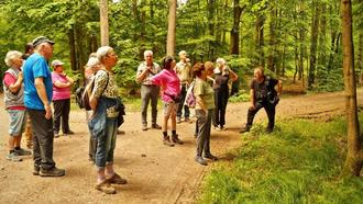 Zu Beginn ging es über den „Stuhlweg“ und unterwegs gab es erste Informationen zu den forstbotanischen Besonderheiten. Viele Örtlichkeiten ergaben die Möglichkeit über Geschichte zu berichten. Dabei spielten nicht nur Jahreszahlen und Ereignisse, sondern auch Geschichten, Erzählungen und mystische Überlieferungen eine Rolle. Der Spaziergang verlief kurzweilig. Manfred Reichertz und Martin Fleischmann verwiesen an verschiedenen Stellen auf die vorhandenen forstlichen Gegebenheiten, den Besonderheiten der Gehölze und erklärten ökologische Gesichtspunkte der Forstwirtschaft. Die Fragen der Teilnehmer wurden beantwortet und es erfolgte ein reger Erfahrungsaustausch.