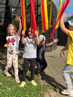 „Vielen, vielen Dank“ sagen die Kinder und pädagogischen Fachkräfte für den herzlichen Empfang in dem O-Schatz-Park.