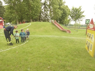 Ein besonderes Highlight stellte die riesige Hüpfburg dar, auf der sich die Kinder austobten und sie ordentlich zum Wackeln brachten! Die Feuerwehr sorgte zudem beim Schlauchspritzen nicht nur für Abkühlung, sondern auch für Begeisterung bei den kleinen Nachwuchsfeuerwehrmännern und – frauen. Auch eine kurze Verschnaufpause vom Hüpfen, Tanzen, Spielen und Toben mit Eis kam natürlich besonders gut an.