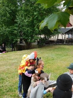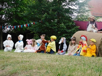 Auf unsere Gäste warteten hustende Regenwürmer, springende Schäfchen, suhlende Schweinchen und zum Schluss die Farm von Old Mac Donald. Tolle Kostüme und Musik, die zum Tanzen und Klatschen aufforderten, untermalten das Programm.