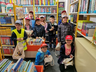 Frau Grundmann las immer eine Geschichte vor und machte die Kinder mit den wichtigsten Bibliotheksregeln vertraut. Anschließend durfte sich jeder ein Buch ausleihen.