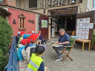 Zum Abschluss holte Herr Gruhne seine Malutensilien heraus und die Kinder durften im Garten malen.