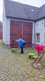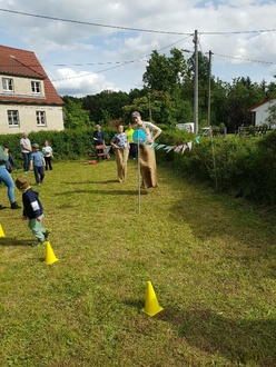 Pünktlich um 16 Uhr fiel der Startschuss für das olympische Spektakel. Anders als bei klassischen Wettkämpfen fanden die Disziplinen nicht an einem zentralen Ort statt – die Stationen waren im ganzen Dorf verteilt: in Einfahrten und Höfen der Bewohnerinnen und Bewohner. So wurde die Olympiade zu einem echten Dorferlebnis.