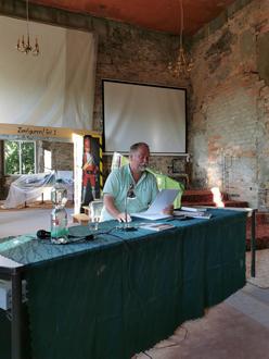 51 Literaturbegeisterte aus Dahlen und Umgebung besuchten am 28. Juni auf Einladung der Stadtbibliothek und des Dahlener Schloss- und Parkvereins die Lesung mit dem Leipziger Autor Henner Kotte. Auf Wunsch las er aus seinem, während der Coronazeit entstandenen Roman „Die dreizehn Leben des Richard Rhode“ - Der Bauernhof der Rhodes, der auf 200 Jahre Familiengeschichte zurückblicken kann, alle Kriegswirren übersteht und am Ende doch der Kohle weichen muss.