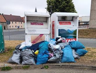 Auch dieses Bild kann nicht von unseren Bürgern gewollt sein – Berge von Kleidersäcken vor den Containern.