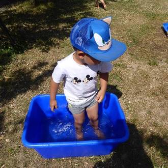 Am Donnerstag war matschen mit reichlich Wasser abgesagt. Dabei ließen Kinder Boote auf der Wasserstraße fahren, spielten in der Matschküche oder führten Wasser-Experimente durch. Zwischendurch kühlten wir uns beim Wassertreten ab.
