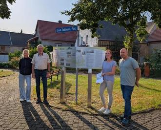 Für das Projekt „Historische Beschilderung für Bortewitz, Börln, Schwarzer Kater und Radegast“ stand uns in den ersten beiden Terminen eine Mitarbeiterin der Maikirschen & Marketing zur Seite. Anschließend entstanden für jeden Ortsteil Arbeitsgruppen zur Ausarbeitung von Inhalten und Bildern. Die Erstellung erforderte zahlreiche Kontrollen und Korrekturen, bis Bortewitz im Juni seine Info-Tafel aufstellen konnte. Am 05.08.2025 war es schließlich auch in Börln soweit: Nach vorausgegangener Fertigung eines Fundaments wurde die Tafel samt Rahmen befestigt und am Abend feierlich unter zahlreichem Publikum enthüllt. Wir danken der Firma HBB Hochbau Heiko Haferkorn für die Bereitstellung des Betons, der Kunstschmiede Schäfer für die Rahmengestaltung aus Edelstahl, Werbe1 Stefan Ehrig für die Gestaltung der Tafeln sowie Cindy Wünscher für die Ausarbeitung der Skyline, die alle Schilder einheitlich ziert.