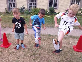 … so hieß es in den Sommerferien bei uns in der Kita „Schloss Sonnenschein“ Großböhla. So zogen in unseren schönen Schloss immer mehr Dinos ein und wir konnten viel über diese faszinierenden Wesen erfahren. Jede Woche erwartete uns zusätzlich zwei besondere Höhepunkte rund um die Dinosaurier. Gestartet haben wir mit einem Dino-Wissenstag. Hier konnten unsere Kinder ihr Wissen unter Beweis stellen und ehrlich bei den Namen von den Dinos macht den Kindern keiner was vor. Dann erwartete uns noch ein Dino-Kino-Tag mit besonderer „Dinokacke“ (Popcorn) das war natürlich für unsere Kinder ein Highlight. In der zweiten Woche wollten wir erfahren, wer den größten und schwersten Saurier hat. Hier konnten wir schöne und lustige Sachen erleben. Oder habt ihr zu Hause einen echten Dino in der Verwandtschaft? Dann wurde es sportlich, wir veranstalteten einen Dinosporttag mit vielen tollen Aktionen wie Dinofuß-Wettlauf, Dinoeier-Wettkullern, und vieles mehr.
