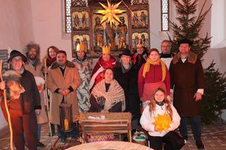 Konnten wir in den vergangenen Jahren an den Nöten Josefs oder den Ängsten dreier Kinder teilhaben, so bildete in diesem Jahr der geschäftstüchtige und raffgierige Herbergsleiter mit seien wirtschaftlichen Problemen den zentralen Handlungsstrang der Geschichte. Das modern gefasste Spiel nahm die zahlreichen Besucher des Gottesdienstes zum Heiligen Abend mit zu den Geschehnissen jener Nacht in Bethlehem. Sie erfuhren von den Sorgen der Hirten und den Problemen der Suche nach einer Herberge. Insgesamt macht sich eine angespannte Stimmung breit. Erst als der Engel von der Geburt des Heilandes kündet macht sich Freude und Hoffnung breit, selbst der Wirt muss erkennen, dass es mehr gibt als Geld. Ihr versöhnliches Finale findet die Geschichte, als alle Anwesenden - im Herzen angerührt - sich um das Kind in der Krippe versammeln und gemeinsam das Lied Stille Nacht - Heilige Nacht anstimmen.