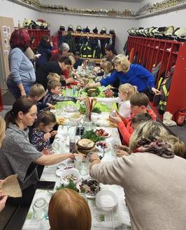 Die Feier begann mit einem gemütlichen Beisammensein bei Kaffee und Gebäck, damit sich für die folgenden Aktivitäten gestärkt werden konnte. Kreativität war gefragt beim gemeinsamen Teelichter-Basteln, bei dem die Kinder individuelle kleine Kunstwerke gestalten konnten. Ein besonderes Highlight war wieder die Märchenaufführung der Muttis, die mit viel Engagement und Liebe zum Detail eine etwas andere weihnachtliche Geschichte zum Leben erweckten.