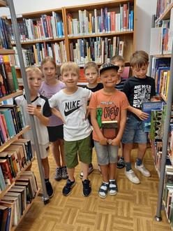 Kurz vor Ferienbeginn erlebten drei erste Klassen und Klasse 2b der Berg-Grundschule eine zünftige Buchlesung über Freundschaft und Abenteuer und stellten Fragen zu Büchern und Bibliothek. Frau Seidel stellte den Kindern und Erwachsenen einen Bibliothekar aus dem Jahr 1903 vor. Das Bibliotheks-Logo wurde ausführlich und gemeinsam erklärt.