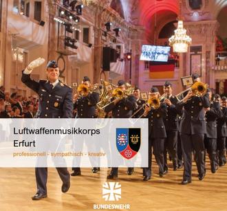 Das Luftwaffenmusikkorps Erfurt besteht aus rund 50 Profimusikern und ist der einzige Klangkörper der Bundeswehr in Mitteldeutschland. Zum Aufgabenspektrum des Thüringer Musikkorps zählen neben Einsätzen im Rahmen von Truppenzeremoniellen wie Gelöbnissen, Kommandoübergaben und Auf-führungen des Großen Zapfenstreichs vor allem eine rege Konzerttätigkeit. Bei zahlreichen öffentlichen Auftritten, Benefizkonzerten und feierlichen Gelöbnissen stellt das Orchester immer wieder seine außergewöhnliche Vielseitigkeit und seinen hohen musikalischen Anspruch unter Beweis.