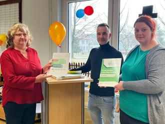 Die Auszeichnung bekam das Team am offiziellen Verabschiedungstag der Leiterin Frau Elvira Jentzsch. Es war ein sehr schöner Auftakt und Anlass Frau Elvira Jentzsch im Beisein ihres Teams, der Kinder der Einrichtung mit einem kleinen tollen Programm, ehemaliger Erzieher, der ehemaligen Leiterin Frau Hanke, Mitstreitern des Sportvereins Buchhains Tempo 94, anwesender Eltern und Weggefährten Frau Jentzsch in den (Un)ruhestand zu verabschieden und für die fast 40-jährige Tätigkeit als Erzieherin und die letzten dreieinhalb Jahre als Leiterin der Kita Knirpsenland ein großes DANKE zu sagen und ihr Engagement vor den zahlreichen Anwesenden zu würdigen.