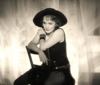 Marlene Dietrich singt in Josef von Sternbergs Verfilmung die unvergesslichen Chansons „Ich bin von Kopf bis Fuß auf Liebe eingestellt“ und „Ich bin die fesche Lola“.