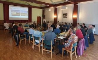 Den Austausch der Akteure bei den Dörfertreffen regen kurze thematische Beiträge an. Diesmal im Fokus standen Möglichkeiten des gemeindlichen Insektenschutzes. Karl Wagner vom Naturpark Niederlausitzer Heidelandschaft und Vertreter des begleitenden Planungsbüros berichteten über ein Modellvorhaben, mit dem Gemeinden animiert werden, machbare Maßnahmen vor Ort umzusetzen. Für die „Modelldörfer“ Lugau und Rückersdorf wurden dazu Potenziale auf Gemeindeflächen ermittelt und konkrete Handlungsansätze bestimmt. Dass das Umsetzen der Empfehlungen noch viel Kommunikation zwischen örtlichen Akteuren, Verwaltung und Bauhöfen erfordert, zeigte die Diskussion am Beispiel Lugau.