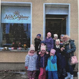 Neben den Besuchen in der Kita unternahmen wir auch gemeinsame Ausflüge. Ein besonderes Highlight war der Besuch im nahegelegenen Blumenladen „Holzblume“. Dort konnten die Kinder beobachten, wie eine Floristin arbeitet, Blumen versorgt und zu Stäußen arrangiert.