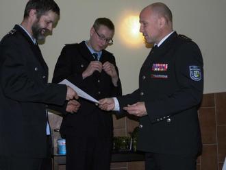 Kam. Mudra und der OWF von Jämlitz beglückwünschte Familie Went zum Hauptfeuerwehrmann.
