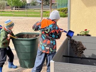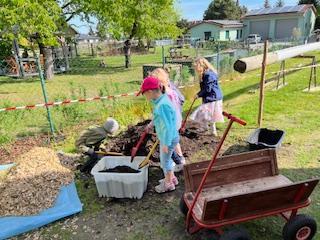 Als Neuanschaffung können wir unser Hochbeet verbuchen. Gemeinsam mit den Vorschülern wurde es auf Qualität geprüft, aufgebaut, befüllt und bepflanzt.
