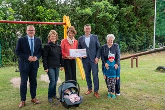 Infrastrukturstaatssekretär Uwe Schüler hat der Gemeinde JämIitz-Klein Düben des Amtes Döbern-Land (Landkreis Spree-Neiße) am 11.06.2024 Lottomittel in Höhe von rund 8.360 Euro aus der Konzessionsabgabe Lotto des Landes Brandenburg übergeben. Das Ministerium für Infrastruktur und Landesplanung unterstützt damit die Gemeinde bei der Erneuerung des Spielplatzes.