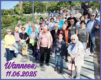 sowie dem Villenviertel Potsdams. Während einer kleinen Pause im Zentrum konnte man das Holländische Viertel besichtigen. Der Reiseleiter, Herr Dr. Norbert Hansel, sorgte für viele interessante Informationen während der Stadtrundfahrt. Das Mittagessen in Stahnsdorf im „Golden Palace" sorgte für eine erholsame Pause. Nach der Mittagspause fuhren wir zum Wannsee und bei herrlichem Wetter ging es mit der 7-Seen Bootstour um den Wannsee/ Havel weiter.
