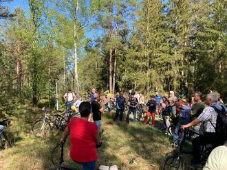 Eine Überraschung für die teilnehmenden Radfahrer war der nächste Halt bei Familie Fred und Maritta Schulz in Tschernitz. Als kleine Stärkung hatten die beiden für alle Radler Gebäck, Brote und Getränke vorbereitet.