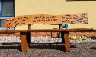 Wir möchten uns herzlich für die wertschätzdenden Worte, die Unterstützung und das Vertrauen bedanken, dass uns die Eltern der Vorschulgruppe entgegeengebracht haben. Es war uns eine Freude eure Kinder ein Stück auf ihrem Weg begleiten zu dürfen. Die Anerkennung und das Geschenk, eine tolle Holzsitzbank, bestärken uns in unserer Arbeit und bedeutet uns viel.
