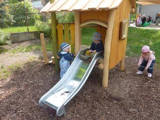 Unser neues Spiel- und Kletterhäuschen wurde aufgebaut. Auch eine neue Nestschaukel gehört dazu. Nun können die Kleinen nach Herzenslust klettern, rutschen, schaukeln und sich ausprobieren. Die Freude ist riesengroß. Sogar die Kindergartenkinder kamen sofort zuschauen.