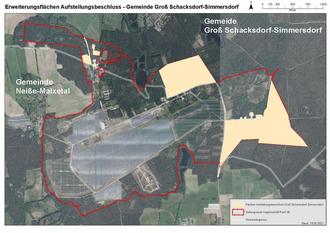 Die in der beigefügten Übersichtskarte für die Photovoltaik-Freiflächenanlage „Solarpark Groß Schacksdorf I“ umfassten Flurstücke liegen vollständig oder teilweise innerhalb des Plangebietes. Die genaue räumliche Abgrenzung und die Aufteilung der Nutzungen wird im Zuge der anstehenden Bauleitplanung weiter konkretisiert.