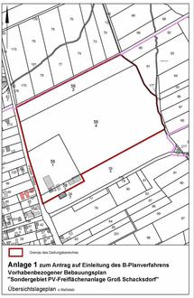 Die ENVIRIA Engineering & Services GmbH beabsichtigt in der Gemeinde Groß Schacksdorf-Simmersdorf im Ortsteil Groß Schacksdorf die Entwicklung eines Sondergebietes für eine Akademie und die Errichtung einer Photovoltaikfreiflächenanlage unter Berücksichtigung der im Geltungsbereich enthaltenen Gebäude/baulichen Anlagen.