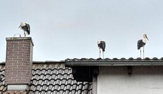 Am Sonntag war es dann endlich so weit, drei der Jungstörche landeten auf dem Dach der Fam. Böhmer und haben ihren ersten Abflug vom Horst gewagt.