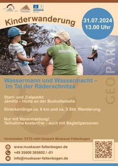 Die diesjährige Kinderwanderung im UNESCO Global Geopark Muskauer Faltenbogen/ Łuk Mużakowa findet am 31. Juli um 13.00 Uhr statt. Start- und Zielpunkt ist Jämlitz, bei der Hütte an der Bushaltestelle.