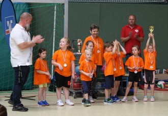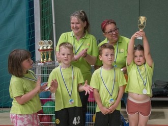 Neben der Einzelwertung wurde auch ein Mannschaftswettbewerb durchgeführt. Jede Kita schickte eine kleine Mannschaft aus 6 Kindern ins Rennen. Im Hindernisparcours zeigten die Teams Bestleistungen. Nach einem spannenden Staffellauf wurden die schnellsten drei Kitas mit einem Pokal geehrt: