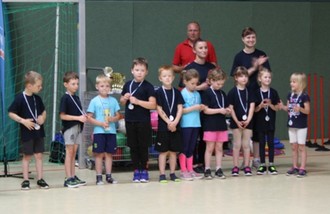 Wochenlang haben die Kinder geübt und mit viel Freude trainiert. Nun war es endlich soweit! Begleitet von den begeisterten Anfeuerungsrufen der Zuschauer absolvierten die Kinder nacheinander die vier Disziplinen (Schlängellauf, Ballzielwurf, seitliches Seilüberspringen, einbeiniger Sprung in den Reifen). Die jungen Sportlerinnen und Sportler gaben ihr Bestes und erreichten viele persönliche Bestleitungen. Danach wurde in einem Hindernisparcours die „sportlichste Kita“ gesucht. Wie bei jedem anderen sportlichen Wettkampf gab es natürlich bei der Kitaolympiade am Ende auch eine Siegerehrung. Jedes Kind bekam eine persönliche Urkunde und eine Medaille. Für die drei Erstplatzierten gab es zusätzlich einen Pokal. In der Einzelwertung wurden Platz 1 bis 3 jeweils einmal für Jungen und Mädchen in jeweils zwei Altersgruppen ermittelt. Bei der großen Siegerehrung überreichten Herr Rakete als ehrenamtlicher Bürgermeister der Stadt Döbern und Herr Schatter für die VR Bank Spree-Neiße den Siegern die Pokale: