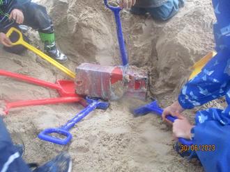 Doch an diesem Tag war für unsere „Großen“ der Tag noch lange nicht zu Ende. Am Nachmittag gab es eine große Kaffeetafel mit dem selbstgebackenen Kuchen. Danach fand eine Schatzsuche statt, welche von den Eltern organisiert wurde. Es ging durch Wald und über Wiesen, aber den Schatz fanden wir doch tatsächlich in der Kita – tief vergraben in unserem Sandkasten.