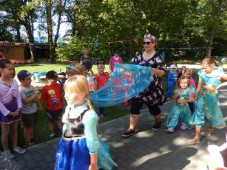 Am 30. Juli 2024 verwandelte sich unsere Einrichtung in ein echtes Walt-Disney-Paradies. Tolle selbstgebastelte Minnie- und Mickey Mouse Girlanden, Masken von der Schönen und das Biest und weitere Disneyschilder verzauberten unseren Spielplatz. Aus der Musikbox hörte man weit in den Ort hinein Disneyklassiker, wie zum Beispiel Arielle - Ein Mensch zu sein… und viele andere mehr.