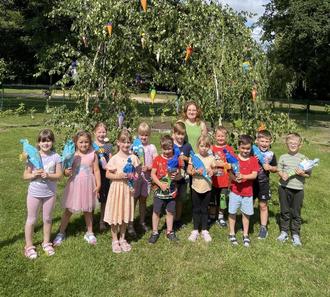Anschließend erhielten die Kinder ihre Portfolios sowie ihre Zuckertüten. Ein leckeres Eis durfte natürlich auch nicht fehlen! Ein Erinnerungsfoto unter unserem Zuckertütenbaum durfte ebenfalls nicht fehlen - so wurden die schönen Momente dieses Tages festgehalten.