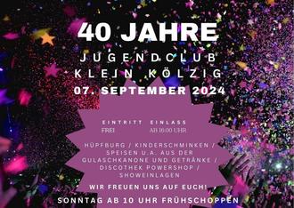 Unser Jugendclub in Klein Kölzig feiert am 07.09.2024 sein 40-jähriges Jubiläum. Alle Interessierten sind dazu herzlich eingeladen!