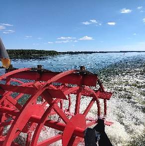 Nach dem Mittagsmahl führte uns die Reise zum Schwielochsee mit Ferienhaus und Campingplatz. Bei für eine Unternehmung traumhaftem Wetter konnten wir auf dem Oberdeck die Umgebung genießen und gleichzeitig den Ausführungen des Kapitäns folgen. Wir schipperten vorbei an einer Seesauna, einem nicht ganz verborgenem FKK Strand, einem versteckten romantisch gelegenem Schlösschen mit Verweiloption, überquerten den kleinen (6-8m tief) und großen (2-4m tief) See, erfuhren, dass dieses behütete große Landschaftsschutzgebiet Tieren, wie z. B Nerzen, Eisvögeln, Grau- und Silberreihern, Bibern, Bussarden, Milanen, Fischadlern u.v.a., einen ungestörten Lebensraum bietet. Wir lauschten Sagen und Legenden. Erholung pur. Entspannt begaben wir uns auf den Heimweg.