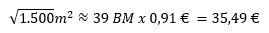 (7) Die Benutzungsgebühr für den Winterdienst aufden Fahrbahnen beträgt jährlich 0,91 €/BM.Beispiel: 1.500 m² (Grundstücksfläche)