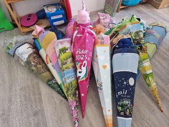 Anschließend gab es in unserer Evangelischen Grundschule wieder die Zuckertüten von der Freiwilligen Feuerwehr Groß Kölzig. Einen lieben Dank auch an Rosalie und Steven für das Überreichen. Nach vielen Fotos gingen alle zu ihren Einschulungsfeiern - mit einem stolzen Lächeln, der gefüllten Zuckertüte und dem ersten Ranzen.
