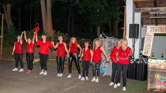Die Kinder erfreuten sich an den zahlreichen Angeboten vom Basteln über Kinderschminken, einer Hüpfburg, Ponyreiten bis hin zu der Möglichkeit, mit diversen Utensilien wunderschöne Seifenblasen zu machen. Auch die Freiwillige Feuerwehr aus Döbern kam mit einem ihrer Einsatzfahrzeuge vorbei und gab den kleinsten Gästen die Möglichkeit, mal in einem echten Feuerwehrauto mit zu fahren. Zum Abend füllte sich das Festzelt stetig und das Publikum bekam einiges geboten. Die Dynamite of Dance heizten den Gästen mit einem Medley aus der aktuellen Show „Bayana“ und einer Cowboy Nummer ordentlich ein,