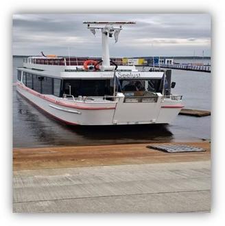 Der Hafen in Klitten am Bärwalder See war der Ausgangspunkt unserer Reise. Das Schiff beginnt dort seine Fahrt und nimmt Kurs auf Uhyst. Von Uhyst setzte das Schiff die Reise fort und steuerte Boxberg an. Nach 1,5 Stunden endet die Fahrt am Hafen in Klitten, wo auch die Reise begann. An liebevoll gedeckten Tischen unter Deck konnten wir das Panorama entlang des Bärwalder Sees genießen. Durch die Flutung des ehemaligen Tagebaus wächst dort eine spektakuläre Wasserwelt, die schon heute aktive Erholung am und auf dem Wasser bietet. Bedanken möchten wir uns bei dem Kapitän für seinen interessanten Vortrag und den vielen erlebten Geschichten rund um Tagebau Bärwald und der Mannschaft für die gute Bewirtung während der Fahrt.