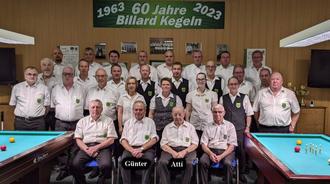 Zwei von ihnen sind heute noch unter uns. Joachim Gocht, Gründungsmitglied und von allen nur „Atti“ genannt, hat bereits 1072 Mannschaftseinsätze hinter sich und startete bei 46 Einzelmeisterschaften für unseren Verein. Er war 46 Jahre Kassenwart und kümmerte sich als Materialchef um die Beschaffenheit der Billards und der Queues.