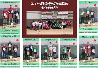 Am 18.01.2025 fand auch gleich unser zweites selbst organisiertes Tischtennisturnier in der Radochlahalle statt. Im letzten Jahr war dieses Turnier schon auf sehr viel Zuspruch gestoßen. Dieses Mal gingen 59 Voranmeldungen ein. Wir waren überwältigt, wie viele Freizeitspieler Interesse an einer Teilnahme hatten. Das war eine große Herausforderung für unser Organisationsteam. Da wir aus den gewonnenen Erfahrungen aus 2024 gelernt haben, fanden wir dieses Mal ein System mit einem kompakteren Zeitplan. Gespielt wurde an 8 Platten. Nach den Einzelspielen war auch noch genügend Zeit mit Doppel-Teams zu spielen.
