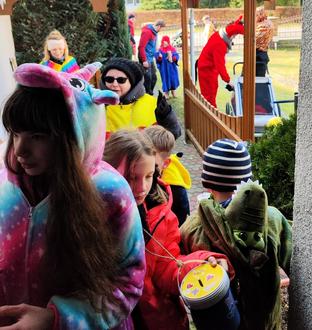 Es war eine bunt gemischte Kinderschar mit ihren Erziehern. Man hörte sie schon von Weitem mit ihrer Zamperbüchsen klappern.